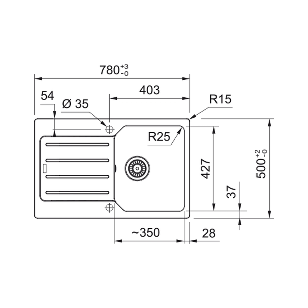- Ширина мийки, см