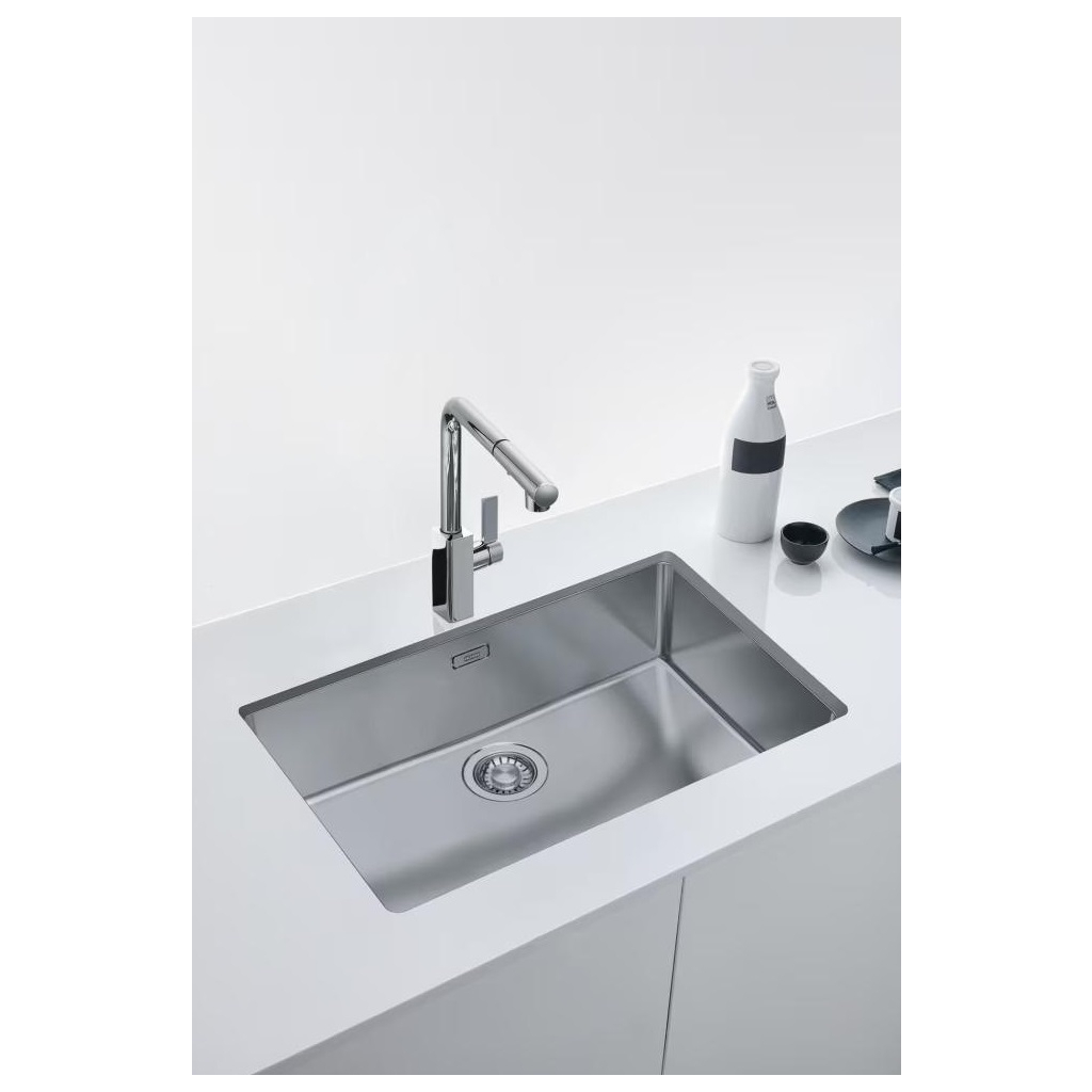 Мийка Franke Maris MRX 110-70 виготовлена з нержавіючої сталі та має сучасну прямокутну форму без крила. Монтаж під стільницю створює мінімалістичний вигляд і зменшує кількість зон, де накопичується забруднення. Велика чаша забезпечує простір для миття габаритного посуду. Ручний зливний клапан працює просто та надійно. Конструкція виконана з AISI 304, що сприяє стійкості до корозії під час щоденного використання.