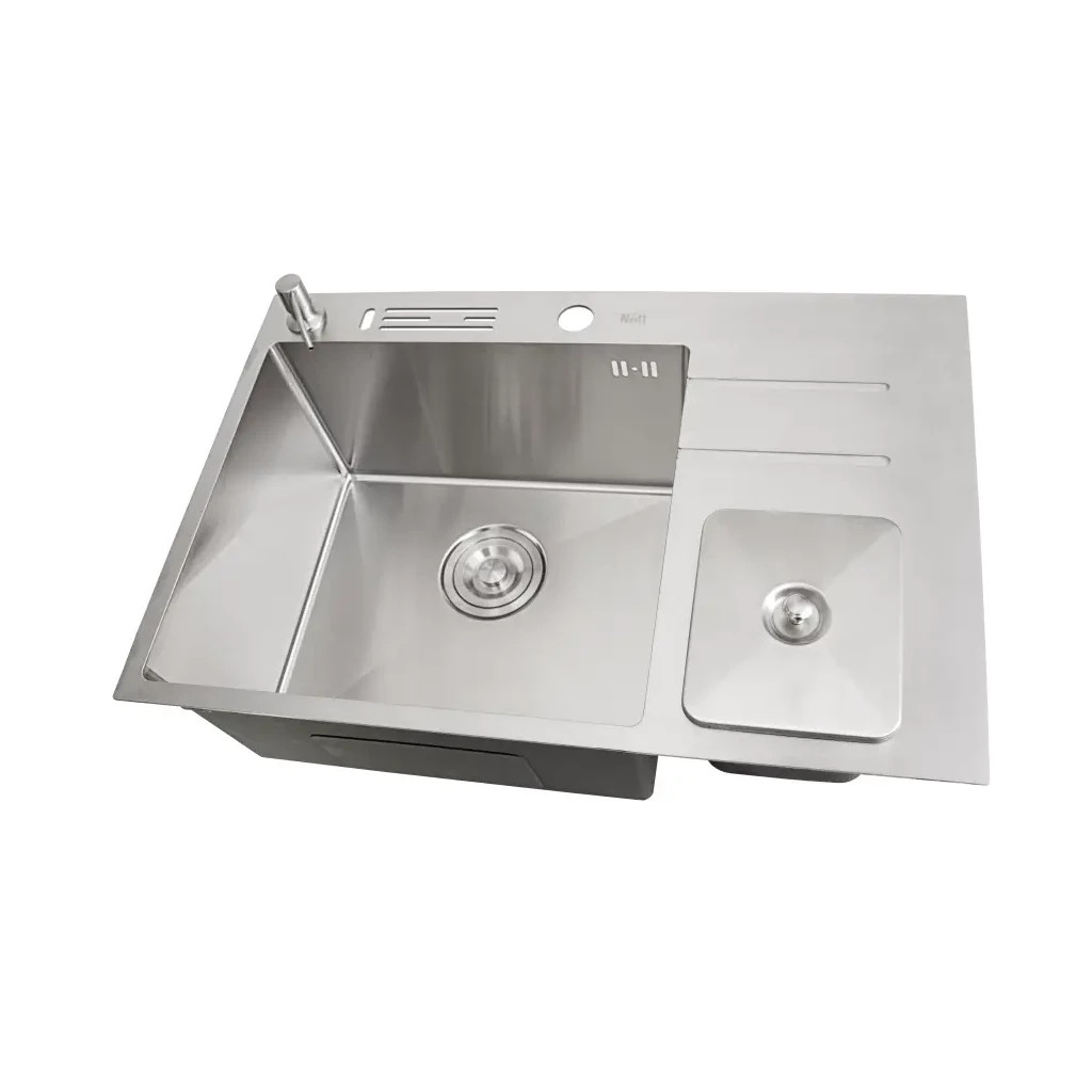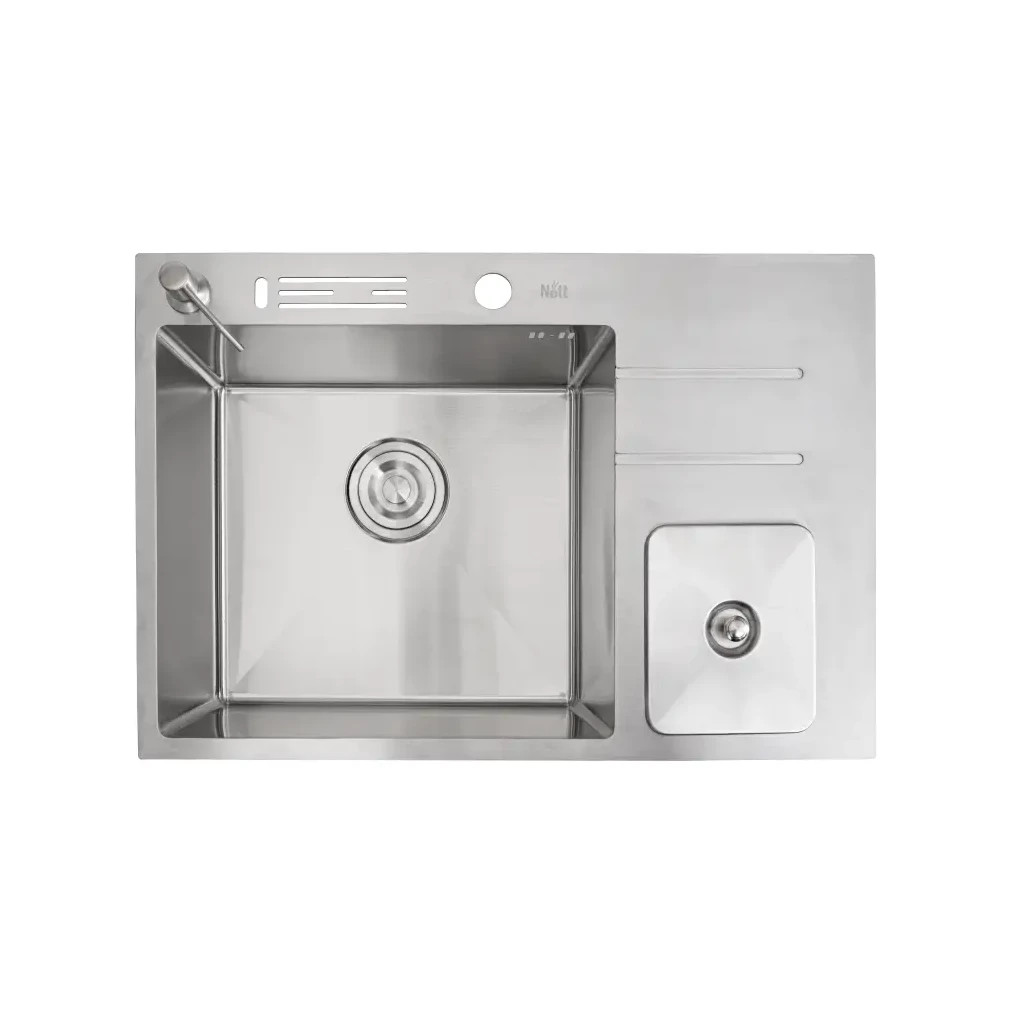 Забудьте про необхідність нахилятися під мийку, щоб очистити овочі або яйця - тепер все це можна виконати прямо в мийці! Модель з нержавіючої сталі комплектується вбудованим контейнером із пластику об'ємом 1,5 літра, що герметично закривається кришкою з тієї ж сталі, гарантуючи відсутність неприємних запахів. Ця мийка зроблена з харчової сталі, безпечної для контакту з продуктами, стійкою до пошкоджень та корозії завдяки складу, що включає 18% хрому та 8% нікелю. Естетика та функціональність залишаться на висоті протягом десятиліть. У порівнянні з тонкостінними аналогами, дана мийка забезпечує покращену міцність і звукоізоляцію, з легкістю витримуючи тяжкість посуду та активне використання. Внутрішні кути, що округляють, не тільки надають елегантності дизайну, але й полегшують прибирання, запобігаючи скупченню бруду.