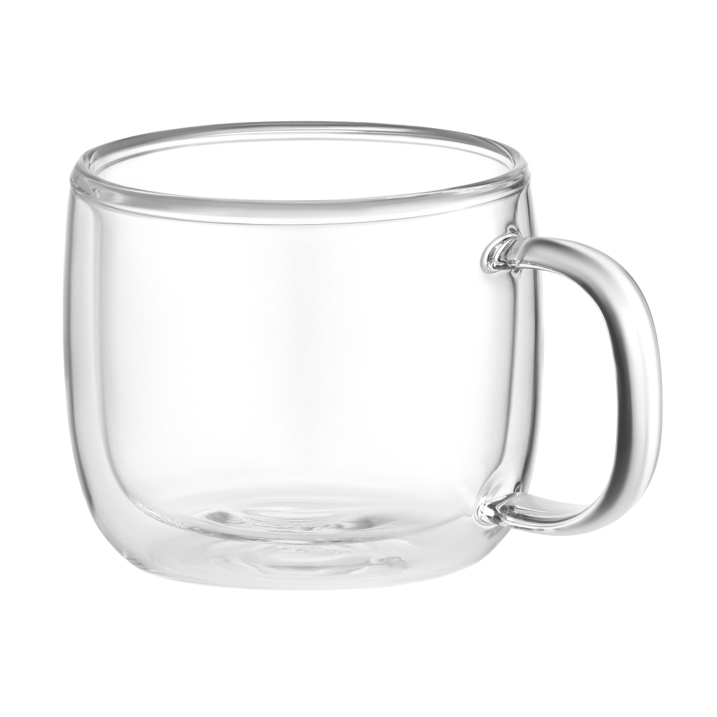 Чашки з подвійними стінками – це насолода для поціновувачів естетики та практичності. Вони надзвичайно міцні та легкі, витримують температуру від -20 до +150 °C. Їх можна використовувати як піали або креманки для морозива. Завдяки особливій конструкції здається, що напої та десерти в них парять у повітрі. Вироби виготовлено з боросилікатного скла, стійкі до подряпин і не взаємодіють із напоями. Кожну чашку створюють вручну, тому вони є унікальними та мають характерний отвір на дні через спеціальний спосіб видування скла. Повітряний прошарок між двома стінками зберігає напої теплими, не нагріваючи зовнішньої поверхні. Чашки можна мити в посудомийній машині до 50 разів і використовувати в мікрохвильовці за температури до 100 °C. У комплектованні – дві чашки.
