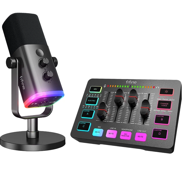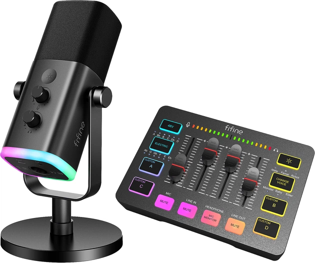 Мікшер у цьому подкаст-комплекті оснащений індивідуальним вимкненням звуку (mute), моніторингом у навушниках та фейдерами гучності, що дає змогу точно контролювати окремі вхідні та вихідні канали. Ви досягаєте потрібного результату швидше та з меншою кількістю дій. Кілька режимів для розваг додають драйву під час командної гри або стримінгу, а RGB-підсвітка аудіомікшера створює візуальну атмосферу, ідеально доповнюючи загальний настрій ігрового простору.