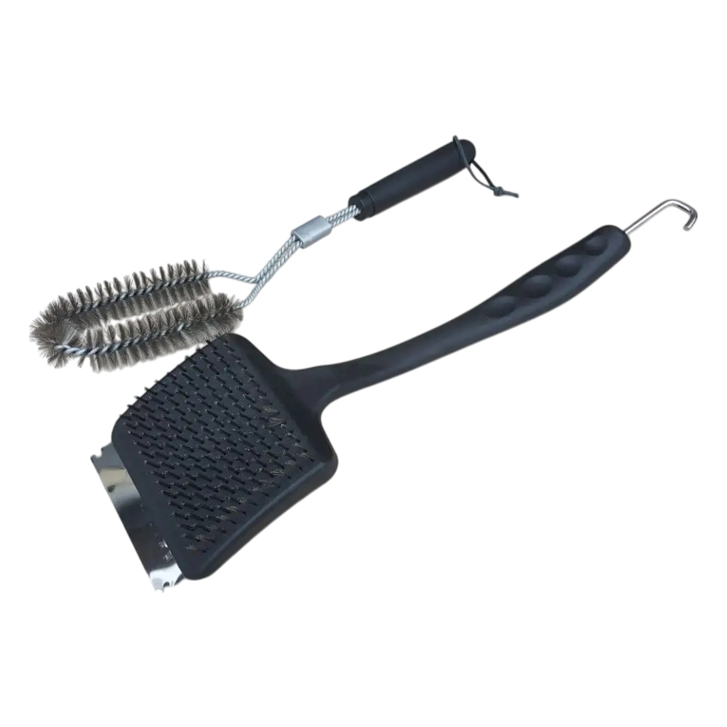 - У комплект входить 2 предмети: щітка та шкребок для чищення решіток і жарильних поверхонь