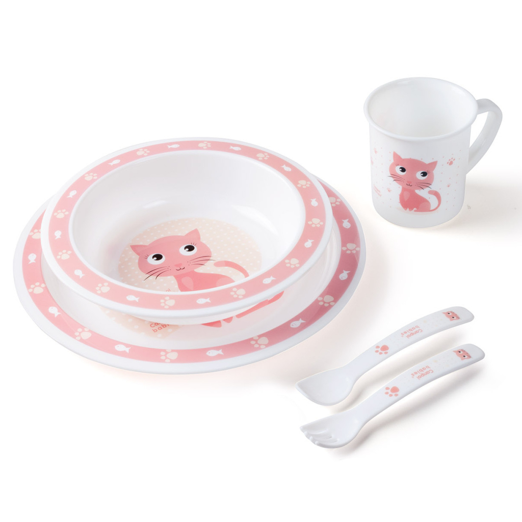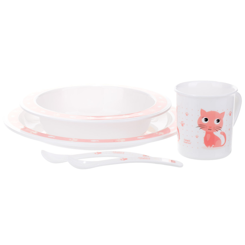 Набір дитячого посуду Canpol babies Cute Animals Котик Рожевий 5 предметів (4/401_pin)