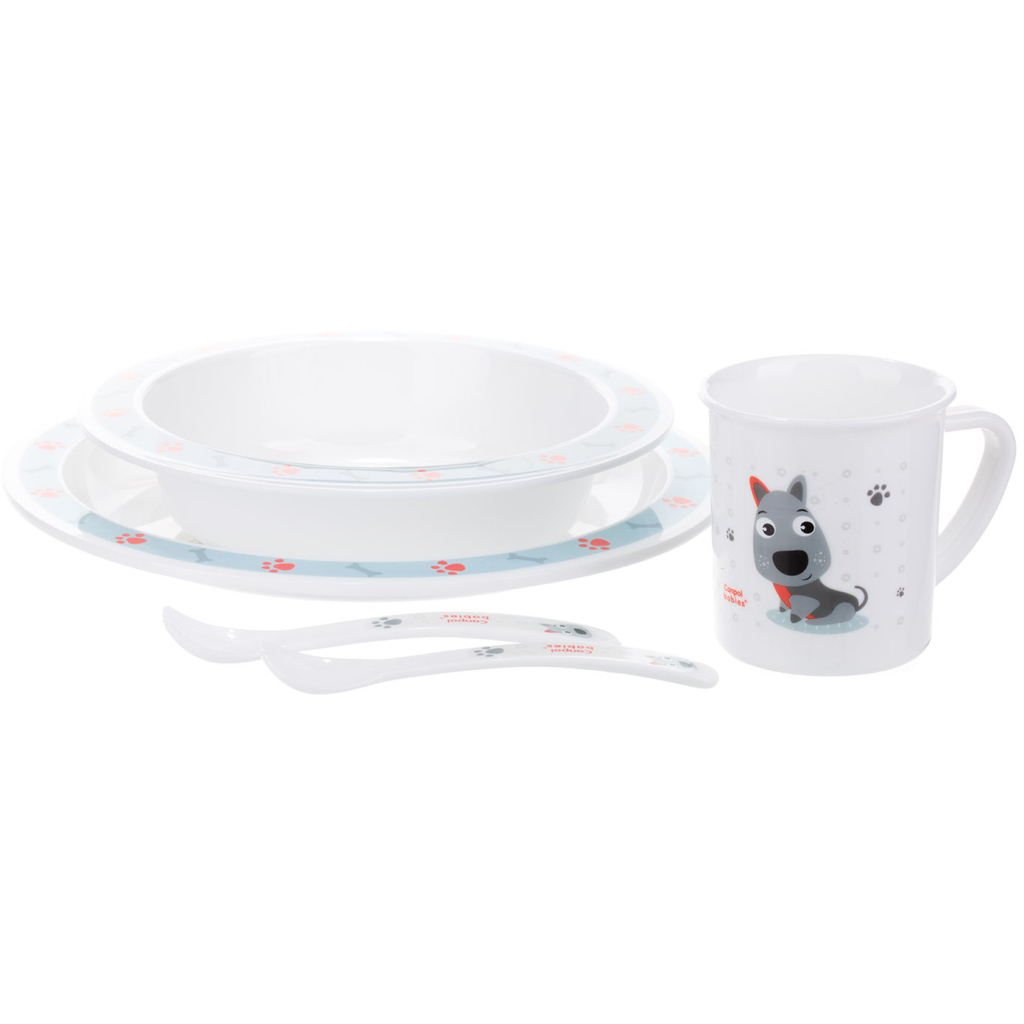 Набір дитячого посуду Canpol babies Cute Animals Собачка Блакитний 5 предметів (4/401_blu)