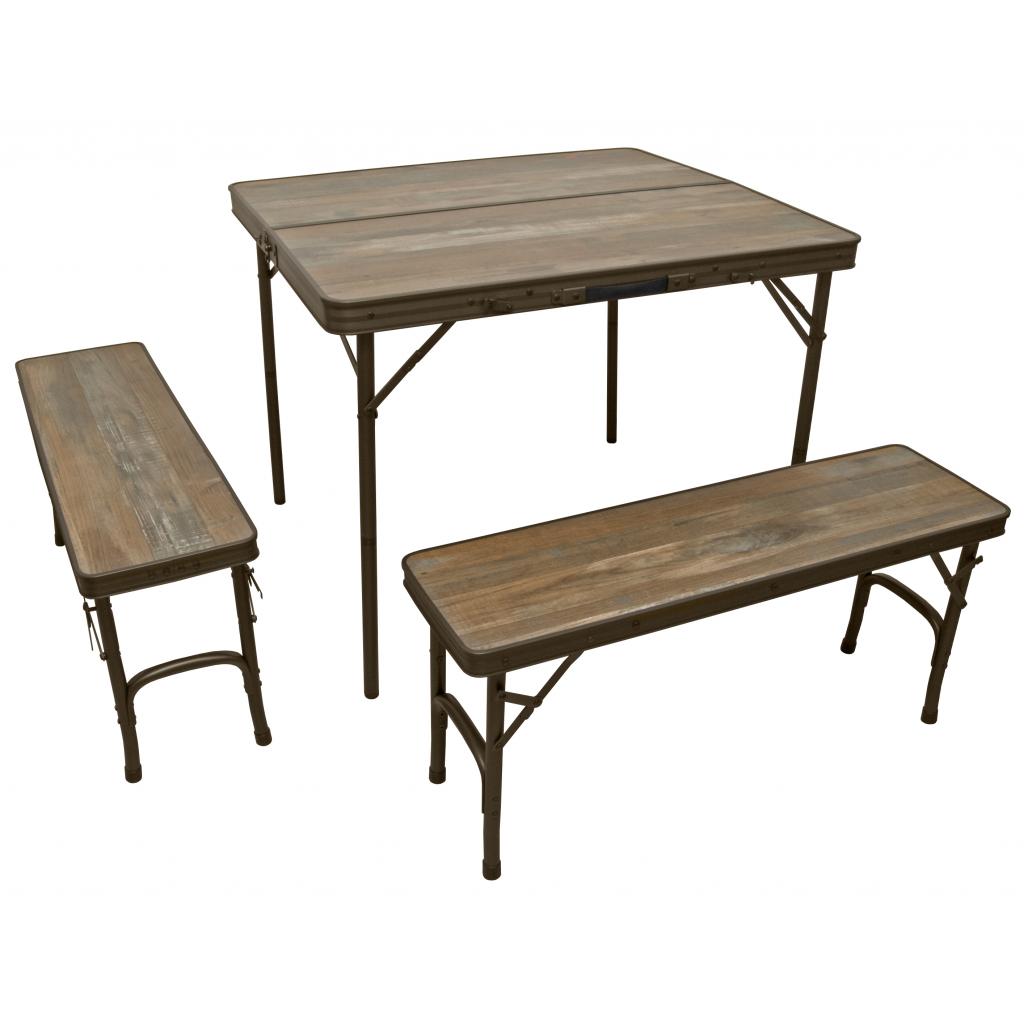 Набір меблів Time Eco TE 022 АS (022 АS) включає в себе розкладний стіл і 2 складних лавки. Каркас столу виконаний з алюмінію (діаметр перетину 25 x 22 мм), а стільниця з ДВП. У складеному вигляді стіл являє собою кейс з ручкою для перенесення, в який також укладаються складні лавки. Розміри стола, см: 90 x 80 x 70. Максимальне навантаження складає 30 кг.