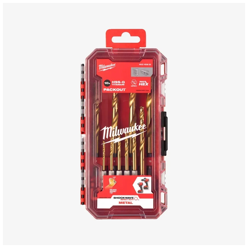Набір свердл Milwaukee по металу PACKOUT RedHEX HSS-G TiN, 10шт (4932493865)