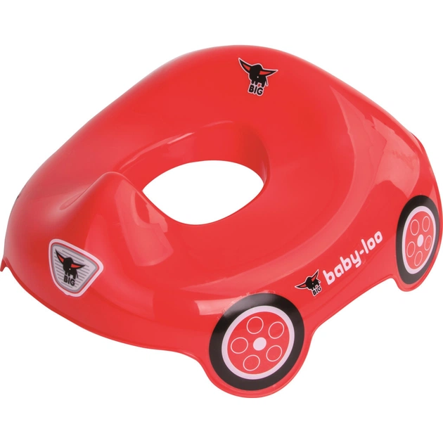 Привчити дитину до туалету, це досить важливий крок. Коли дитині потрібна підтримка й безпека, вам стане в пригоді накладка від BIG. Накладка має сучасний дизайн у формі машинки Bobby car. Виготовлена з високоякісного, міцного пластику. Ширина сидіння 35 см, наближена до стандарту виробництва кераміки, можлива максимальна ширина унітаза 37 см. Вона повністю безпечно кріпиться до основи і не ковзає. Спинка забезпечує комфортне сидіння дитини. Завдяки повному покриттю сидіння унітаза робить використання накладки особливо гігієнічним. Ваша дитина з легкістю навчиться користуватися накладкою самостійно.