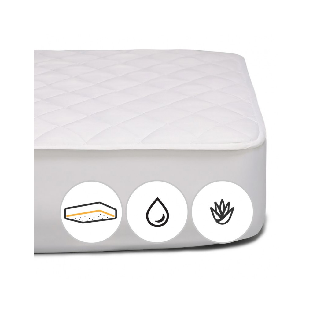 Ми надаємо вам унікальну можливість придбати інноваційний наматрацник із просоченням алое вера! Як відомо, алое вера є адаптогеном — рослиною, що підвищує здатність людини адаптуватися до зовнішніх впливів і чинити опір стресам. Завдяки просоченню алое вера наматрацник має вентилювальні, антибактеріальні, зм'якшувальні, регенерувальні та заспокійливі властивості, що створить комфортні умови для вашого сну. Просочення алое вера має унікальні властивості, і завдяки своїй чудовій властивості проникати в тканини, насичує їх корисними речовинами в процесі виробництва, а також регулює температуру тіла, що дасть змогу вашій шкірі вільно «дихати».