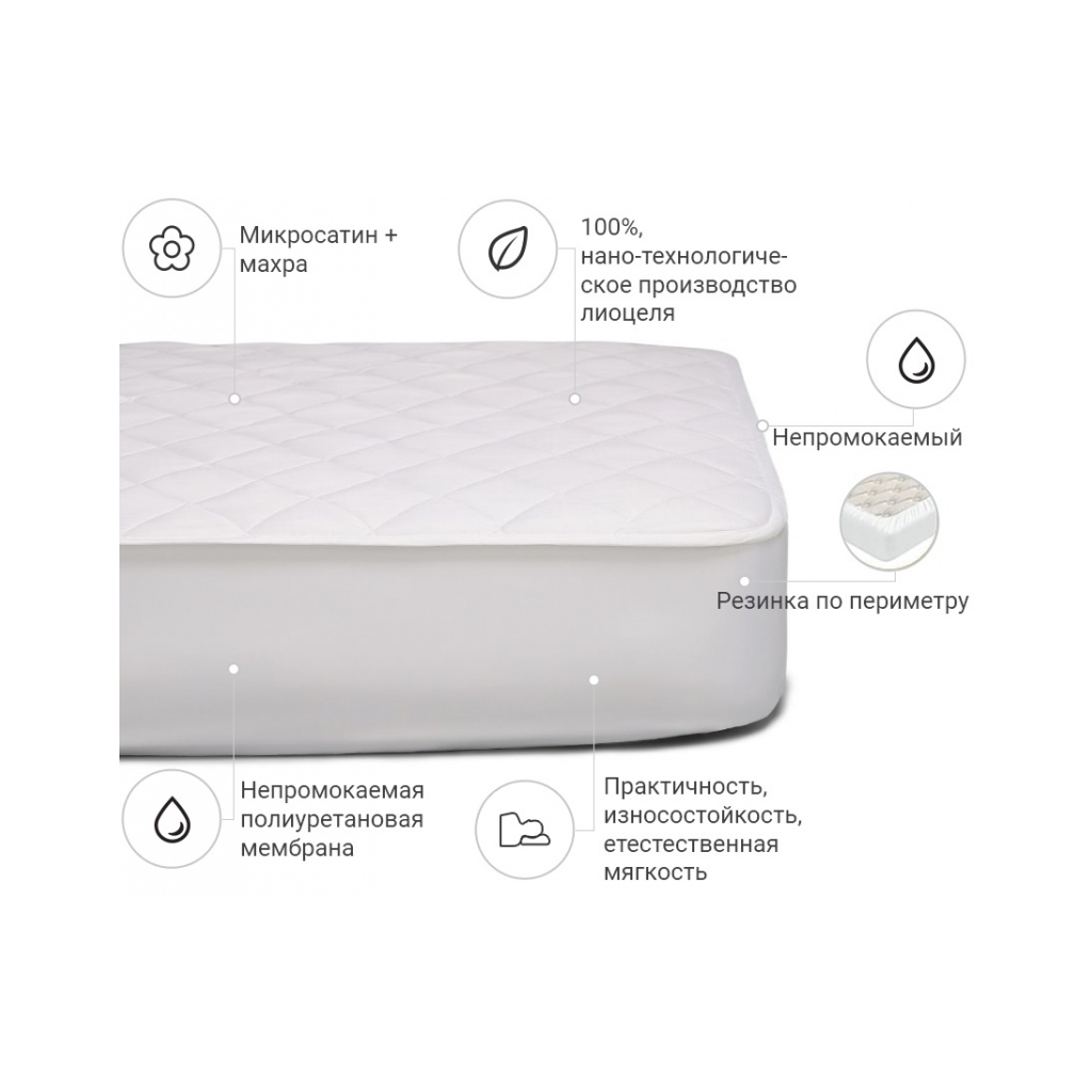 Ми стараємося для Вас! Тому, на численні прохання постійних клієнтів, наші фахівці вивели спеціальну лінію наматрацників для зручності та практичності використання — серія Тенцел двосторонній! Одна сторона наматрацника виготовлена з високоякісної тканини мікросатин — виробництва Італія. Тканина мікросатин — ніжна, приємна на дотик, сатинове плетіння забезпечує довговічність і м'якість усього виробу загалом. Мікросатин подарує благодатну прохолоду спекотним літом, вбираючи зайву вологу. Наматрацник не ковзає по матрацу, добре фіксується. А інша сторона прийме своїми теплими та ніжними дотиками, зігріє благодатним теплом завдяки унікальній непромокальній махровій мембрані. Адже махрова мембрана — вершина гігроскопічності, її використовують для виробництва якісних виробів для наматрацників, які захищають постільну білизну та матрац від забруднень, які продовжують термін експлуатації та перешкоджають проникненню вологи й накопиченню пилу.