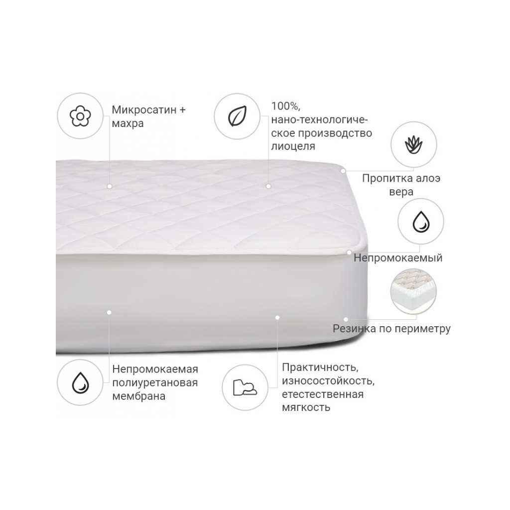 Ми надаємо вам унікальну можливість придбати інноваційний наматрацник із просоченням алое вера! Як відомо, алое вера є адаптогеном — рослиною, що підвищує здатність людини адаптуватися до зовнішніх впливів і чинити опір стресам. Завдяки просоченню алое вера наматрацник має вентилювальні, антибактеріальні, зм'якшувальні, регенерувальні та заспокійливі властивості, що створить комфортні умови для вашого сну. Просочення алое вера має унікальні властивості, і завдяки своїй чудовій властивості проникати в тканини, насичує їх корисними речовинами в процесі виробництва, а також регулює температуру тіла, що дасть змогу вашій шкірі вільно «дихати».