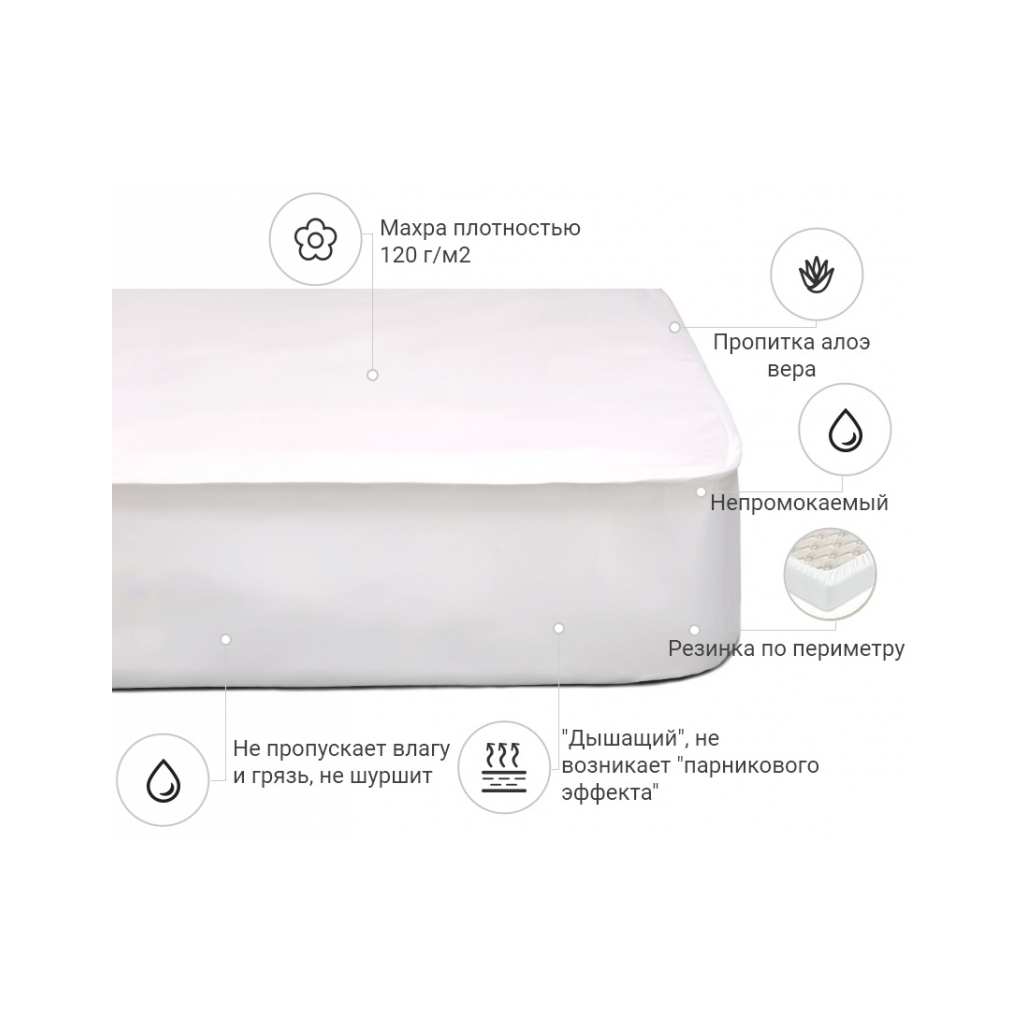Завдяки унікальній непромокальній махровій мембрані Ви не будете потіти та зможете спокійно насолоджуватися солодкими снами впродовж усієї ночі! Адже махрова мембрана (100% бавовна) — вершина гігроскопічності, її використовують для виробництва якісних виробів для наматрацників, які захищають постільну білизну та матрац від забруднень, продовжують термін експлуатації та перешкоджають проникненню вологи та накопиченню пилу.