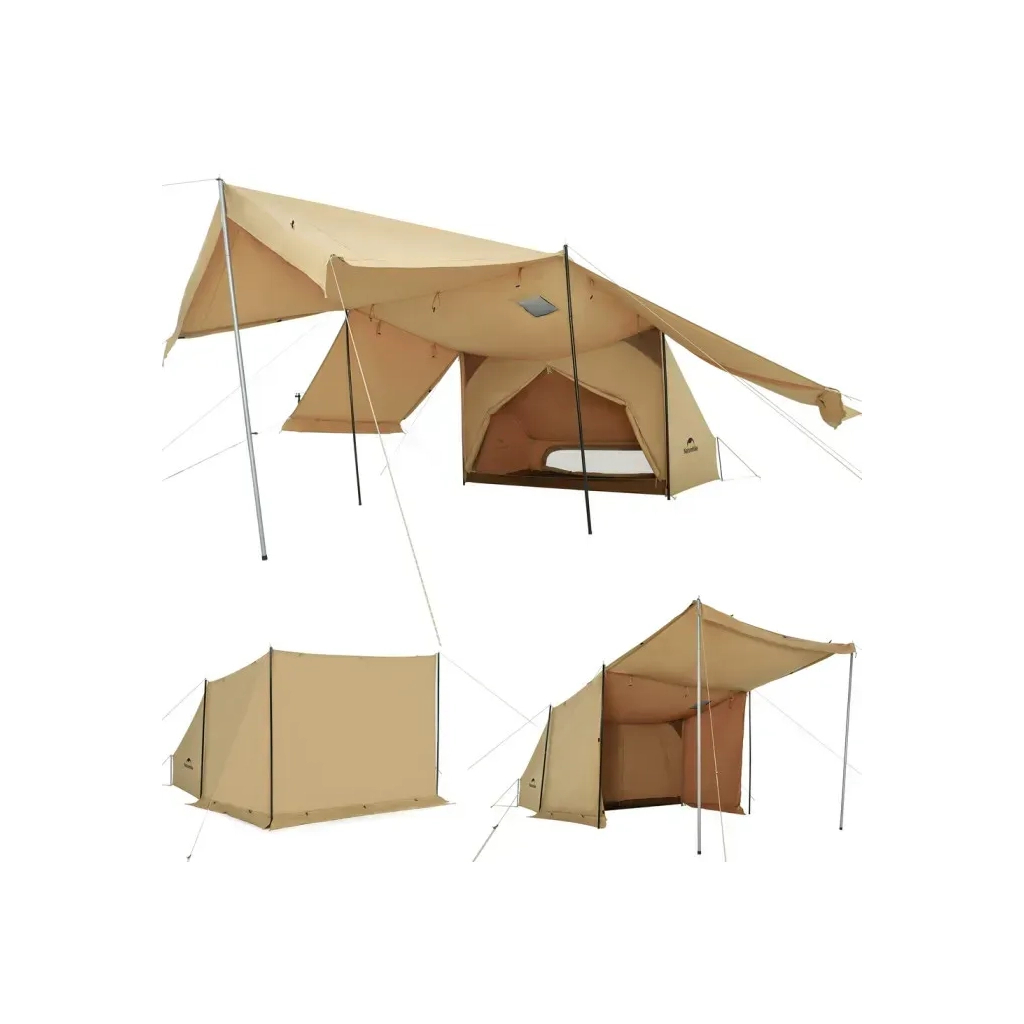 Naturehike CNK2450WS026 — намет з функціональною формою-трансформером, яку можна змінювати відповідно до погодних умов. Конструкція складається з основного намету на одного відпочивальника та зовнішнього тенту. Повні розміри у встановленому вигляді — 250х220х170 см. Тент можна використовувати як навіс для зони відпочинку в тіні або облаштування польової кухні. Також його можна опустити, утворивши просторий ізольований тамбур для зберігання спорядження.