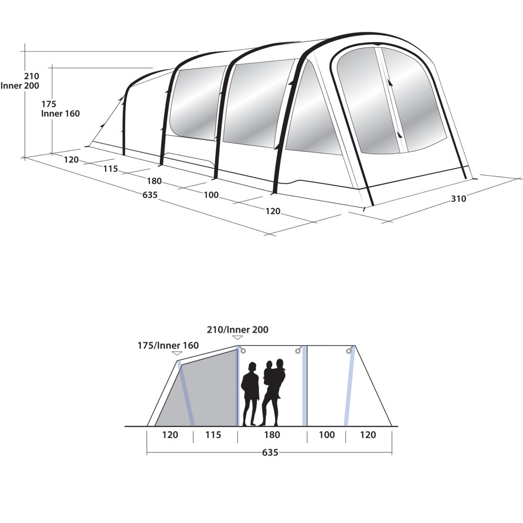 - Outwell Wind Brace System - використання фіксуючих лямок в ключових точках вздовж надувних балок, щоб забезпечити підвищену стійкість намету при сильному вітрі.