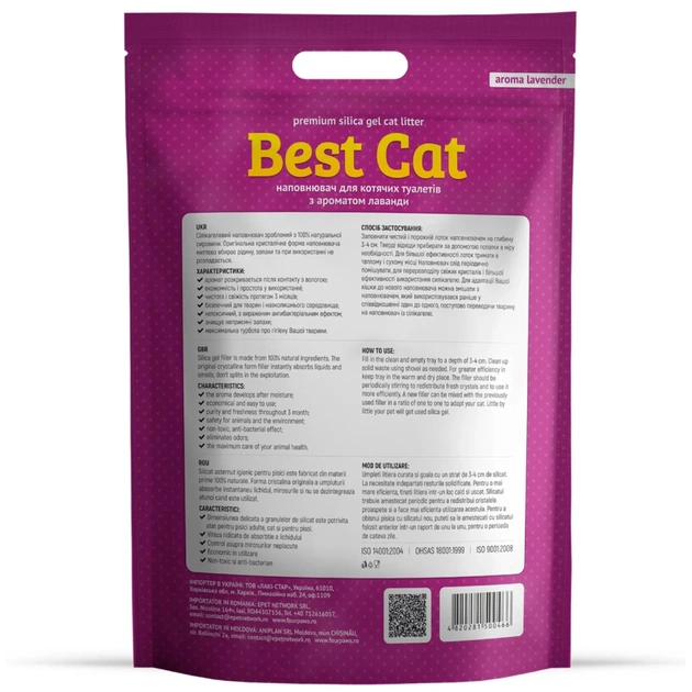 Силікагелевий наповнювач для котячого туалету Best Cat Purple Lawanda - це наповнювач нового покоління, який виготовляється з натуральних, екологічно чистих силікагелевих кристалів, безпечних як для тварин, так і навколишнього середовища.