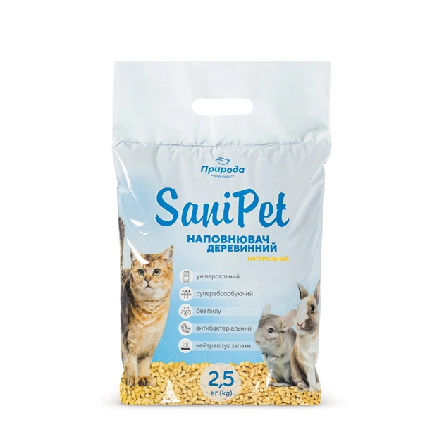 Наповнювач для туалету Природа Sani Pet універсальний деревний (натуральний) 2.5 кг (4820157404164)