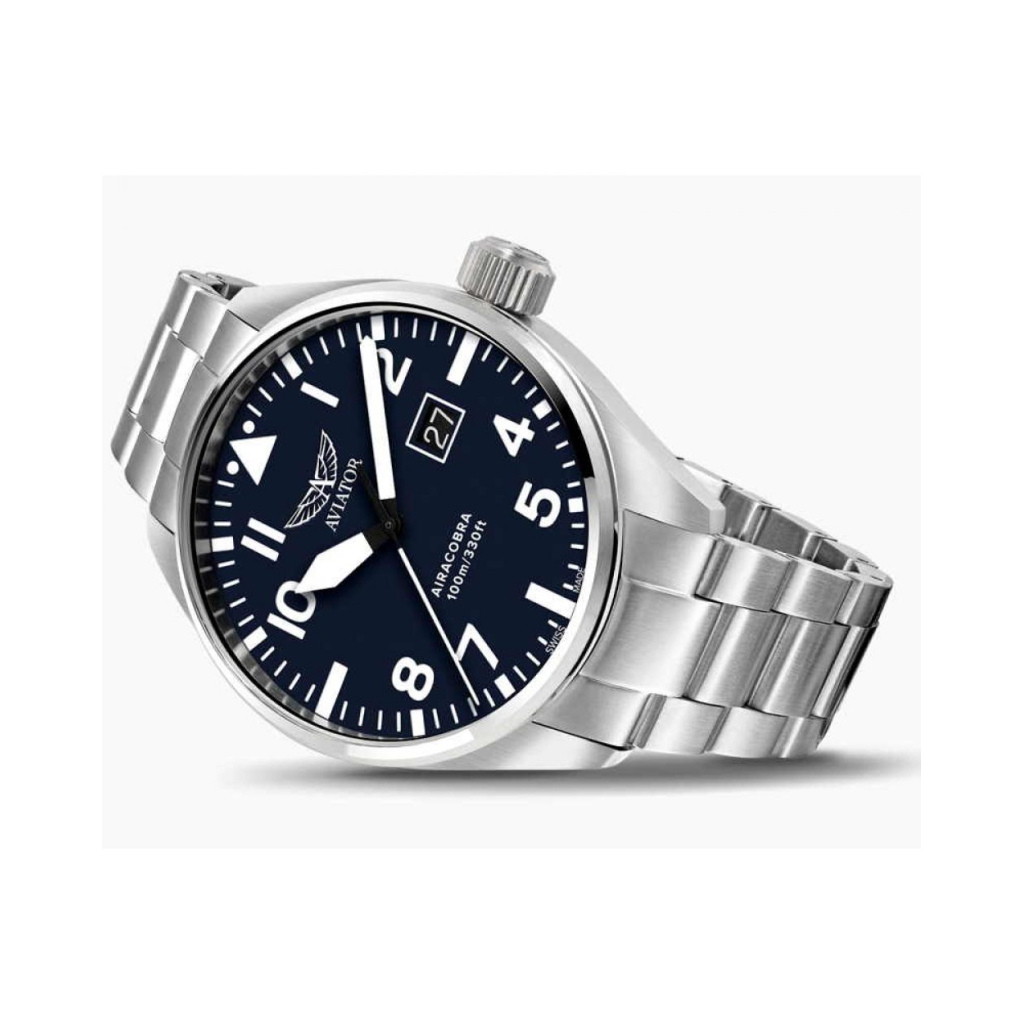 Під час Другої світової війни забезпечення авіаційної підтримки літаками Airacobra було запорукою успіху сухопутних операцій. Годинник AVIATOR Airacobra P42 не поступається своєму авіаційному прототипу за надійністю і витриманий у такому ж ретро стилі, як і легендарний військовий літак. При створенні AVIATOR Airacobra P42 використовуються найкращі та найпрестижніші матеріали, що забезпечує годинникам військову точність і класичний вигляд. Своєю високою контрастністю стрілки та годинникові мітки нагадують оформлення кабіни пілота. У годинника добре читається циферблат, велике вікно індикації дати і кришка корпусу з клепаними елементами. Все це надає годинникам Airacobra P42 виняткову надійність і в той же час дозволяє увічнити в них пам'ять про віхи в історії авіації.