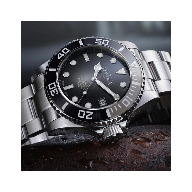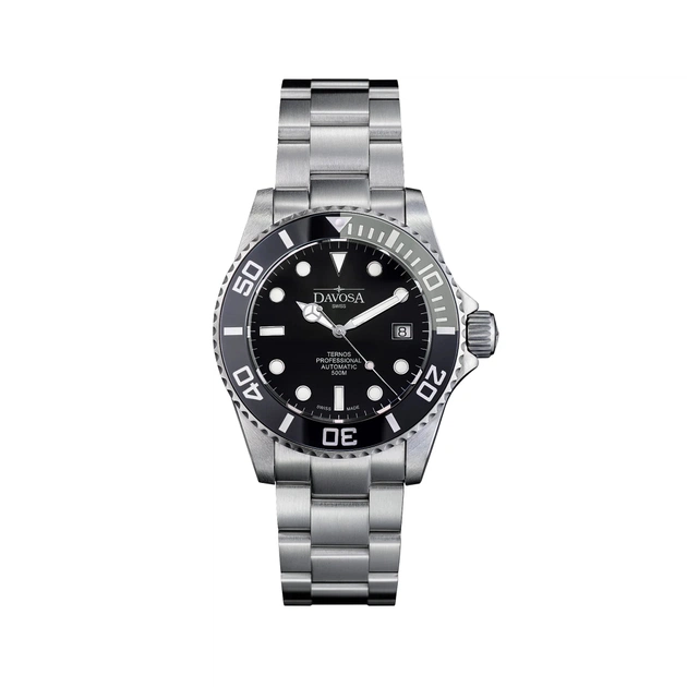 Навіть на зворотному шляху до поверхні води можна повністю покластися на DAVOSA Ternos Professional завдяки автоматичному гелієвому клапану в положенні «9 годин». Клапан регулює тиск газу всередині годинника, а потім забезпечує постійне вирівнювання тиску, щоб сапфірове скло не вийшло зі своєї оправи. На суші професійне спорядження для дайвінгу перетворюється на годинник із класичним дизайном у сучасному виконанні.