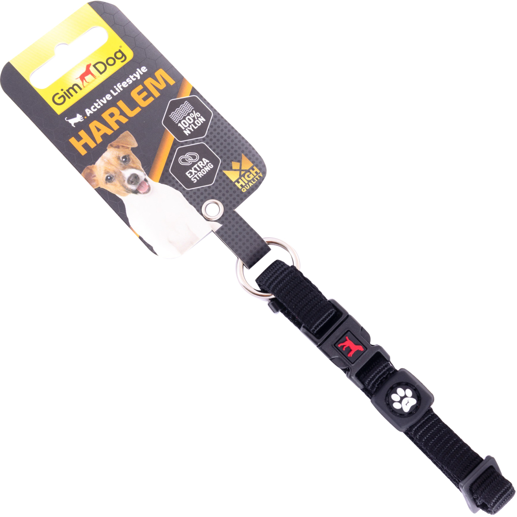 Нашийник для тварин GimDog Harlem нейлон 20-30 см/10 мм чорний (8009632058542)