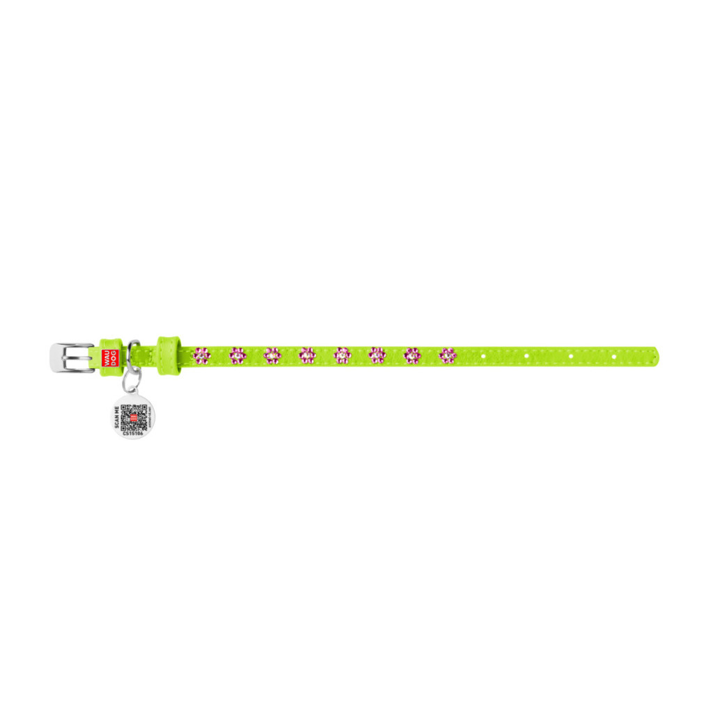 Нашийник для тварин WAUDOG Glamour з QR-паспортом "Квіти" S Ш 20 мм Д 30-39 см салатовий (32025)