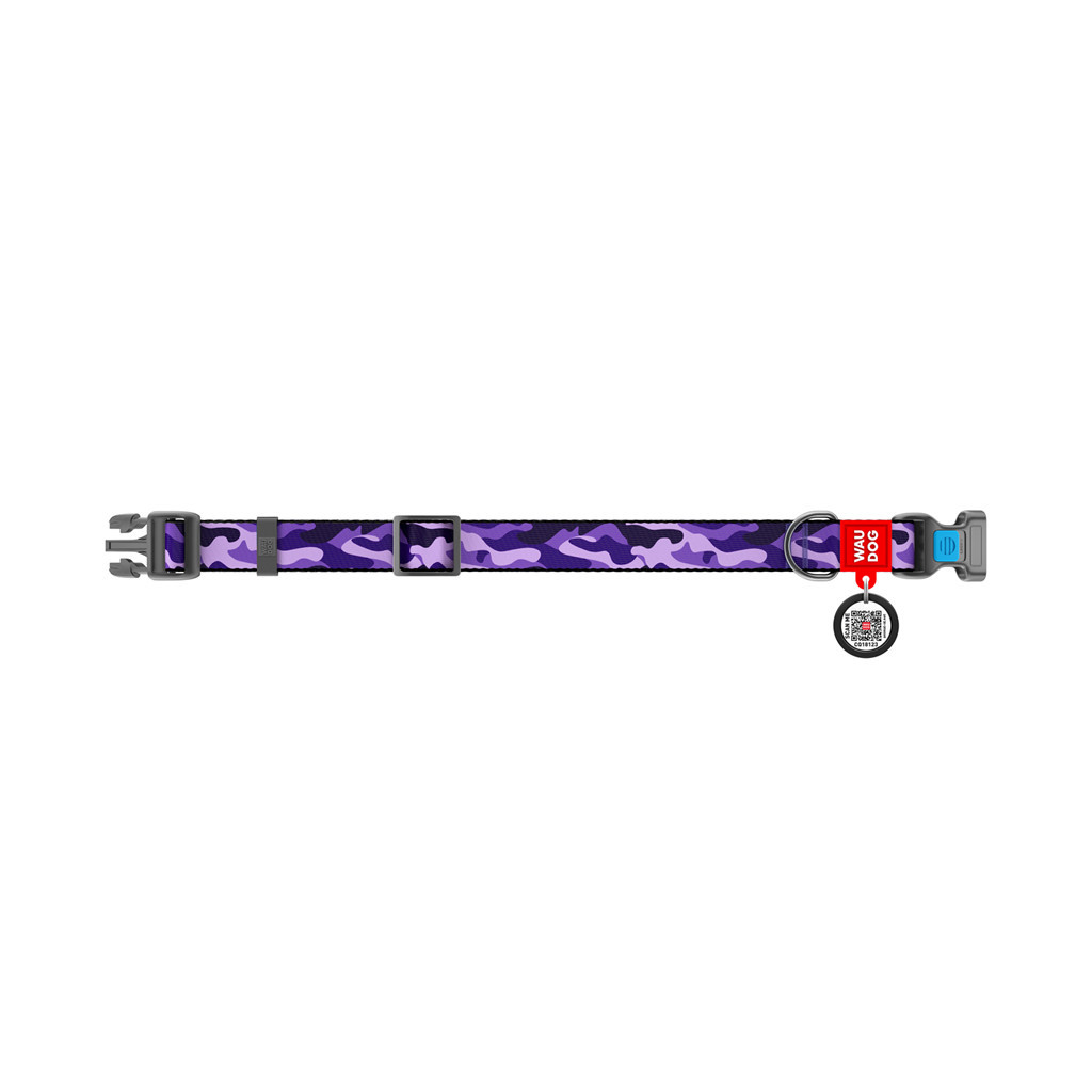 Нашийник для тварин WAUDOG Nylon з QR паспортом "Фіолетовий камо" пластиковий фастекс L (4715)