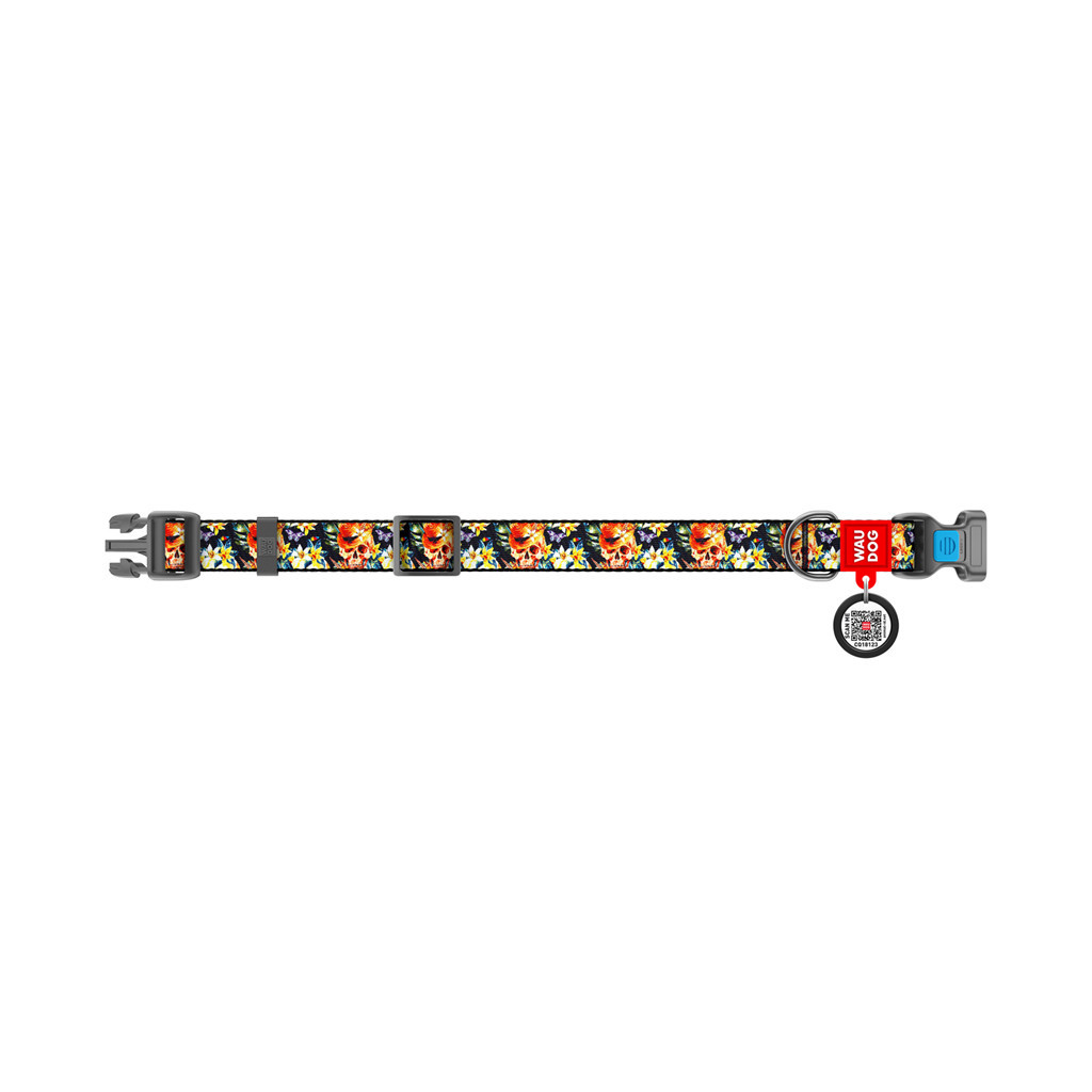 Нашийник для тварин WAUDOG Nylon з QR-паспортом "Гламурні черепа" пластиковий фастекс XL (4816)