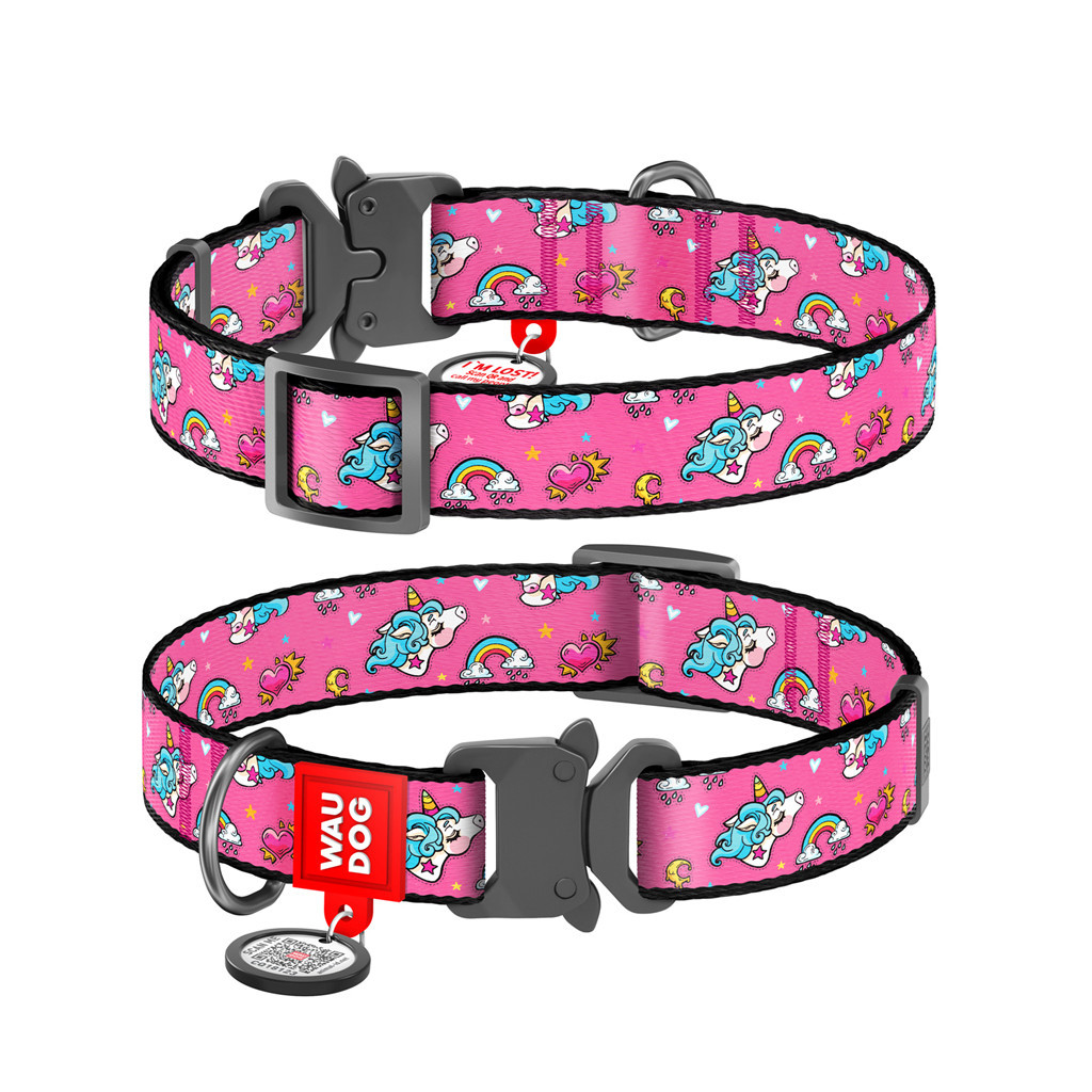Нашийник для тварин WAUDOG Nylon з QR паспортом "Єдиноріг" металева пряжка-фастекс XL (5133)