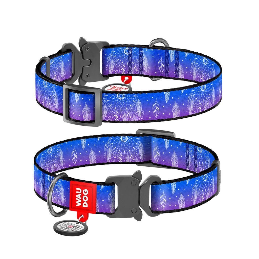 Нашийник для тварин WAUDOG Nylon з QR паспортом "Ловець снів" металева пряжка-фастекс Ш 25 мм Д 37-58 см (5065)