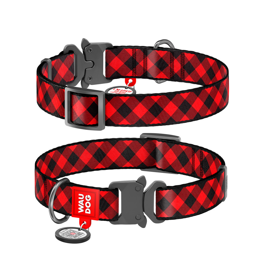 Нашийник для тварин WAUDOG Nylon з QR паспортом "Шотландка червона" металева пряжка-фастекс XL (5087)
