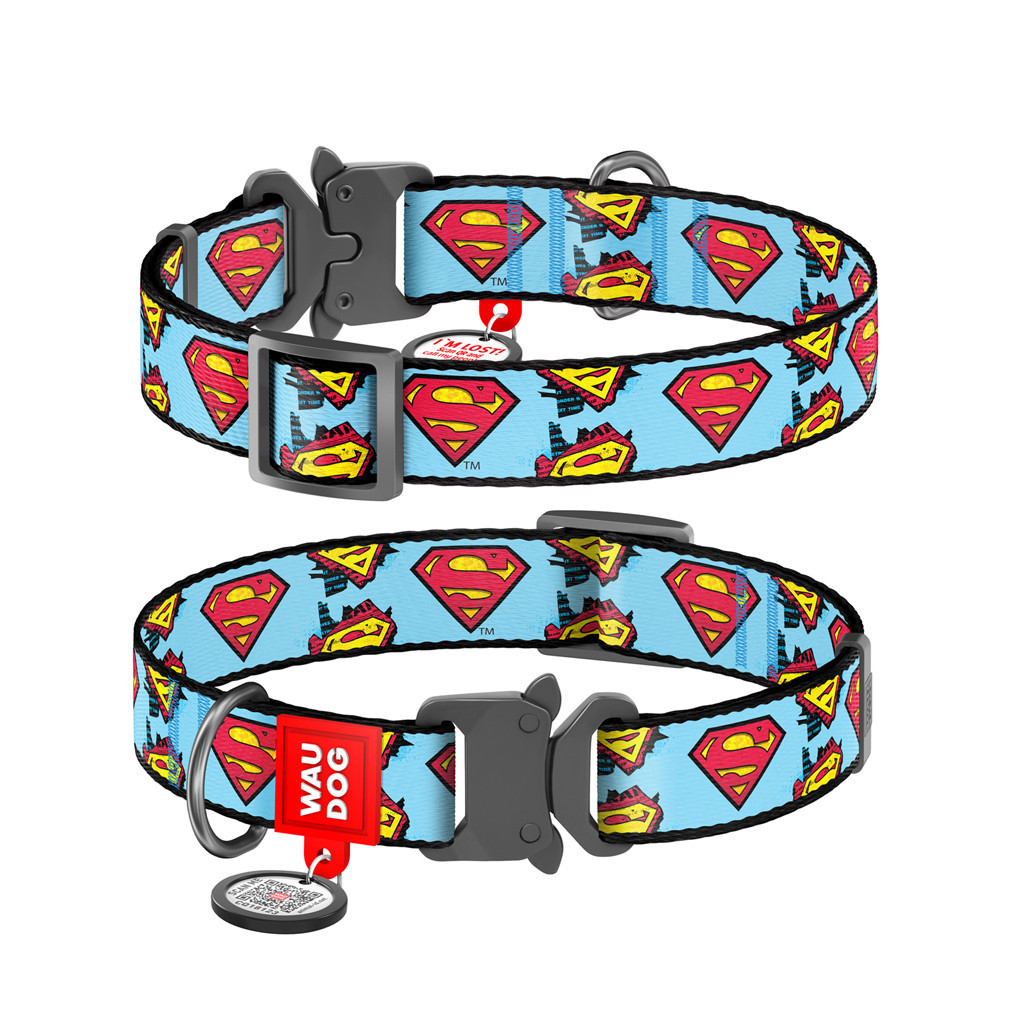 Нашийник для тварин WAUDOG Nylon з QR паспортом "Супермен" металічна пряжка-фастекс M (0020-2005)