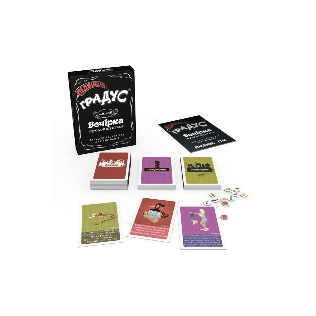 Підняти градус будь-якого застілляЗахоплююча гра на алкогольну тематику, що відноситься до сімейства ігор «Йорж». Настільна Застільна гра «Градус» - це суперновинка від вітчизняного виробника. Гра призначена тільки для дорослих, для осіб, яким вже дозволено пити за законом. Вона підвищить градус вашого настрою і зробить дружню вечірку по-справжньому феєричною. Пийте, веселіться і виконуйте завдання! Гікач гарантує, що буде ржачно.