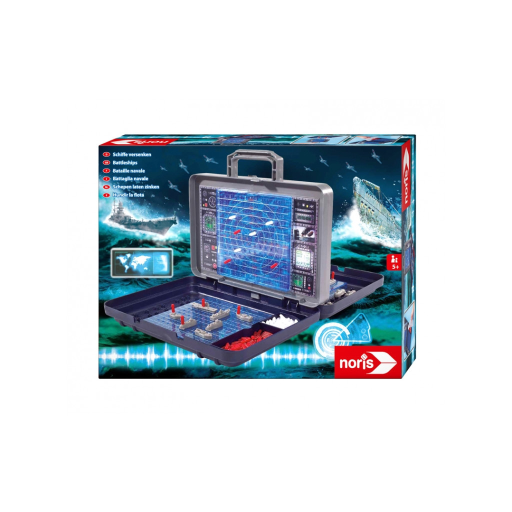 Комплектація містить фішки для позначення пострілів і два комплекти кораблів різних розмірів, що дозволяє відтворювати різні стратегії. У грі передбачено відсік з кришкою для зберігання фішок, що забезпечує порядок та зручність у використанні. Виготовлена з якісного пластику, гра безпечна і довговічна, що підкреслює турботу компанії Noris про своїх клієнтів.