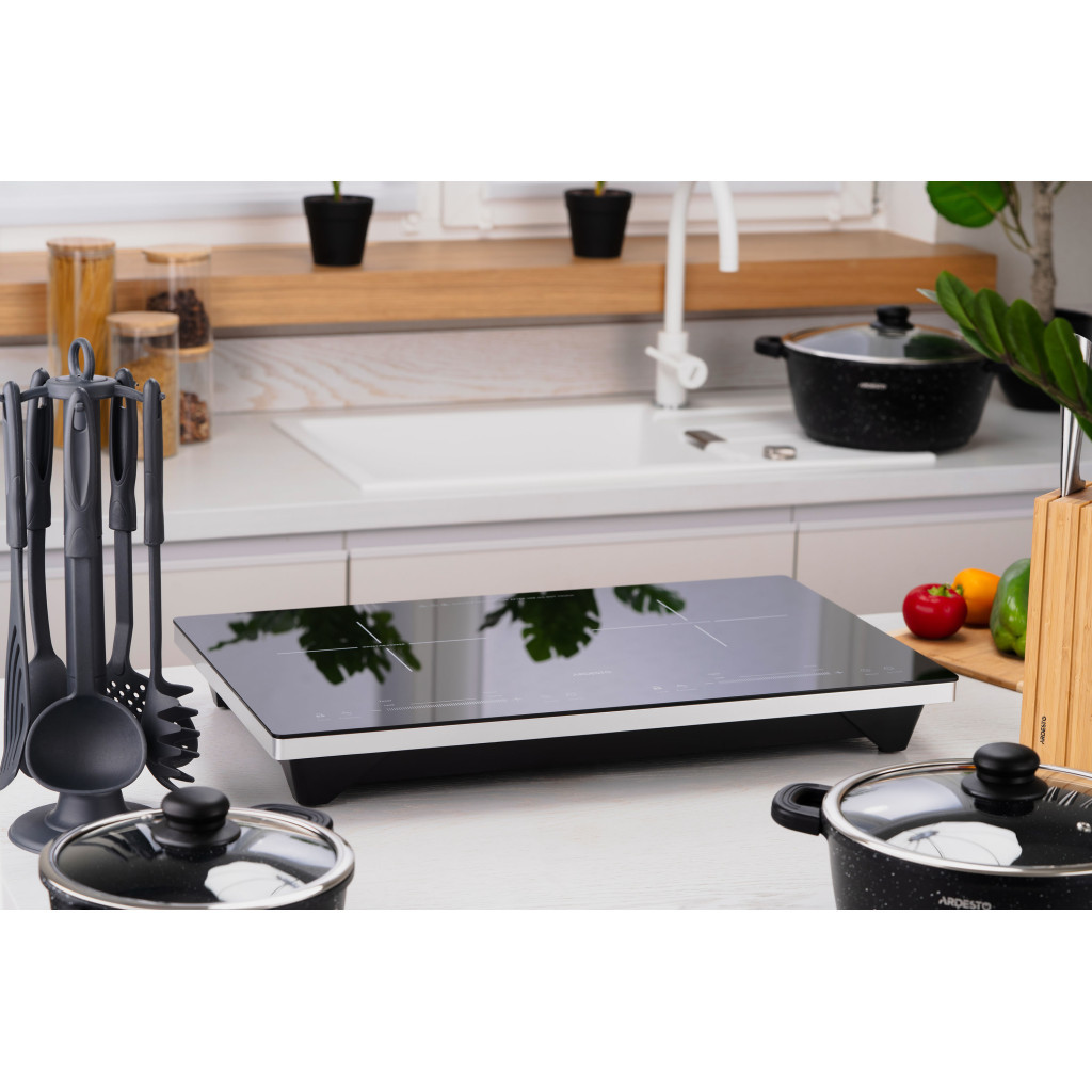Настільна індукційна плита ICS-B218 від компанії Ardesto обладнана двома конфорками й керується сенсорними датчиками. Індукційна плита чудово підходить для економії енергії й часу приготування та не вимагає багато олії, а це вже забезпечує екологічність і дієтичність.