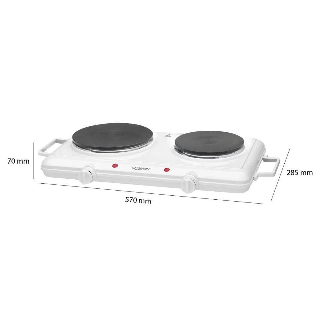 Електроплита з двома конфорками дозволяє одночасно використовувати дві конфорки різних розмірів загальною потужністю 2500 Вт. Модель Bomann DKP 5028 CB працює у багатьох ситуаціях – як у разі аварії на газовій магістралі або за відсутності підключення газу, так і при ремонті кухні, коли ви не можете використовувати стаціонарно встановлену там плиту. Електрична плита стане в нагоді і на дачі, і в поїздках. Це набагато безпечніша альтернатива плитам, підключеним до газового балона.
