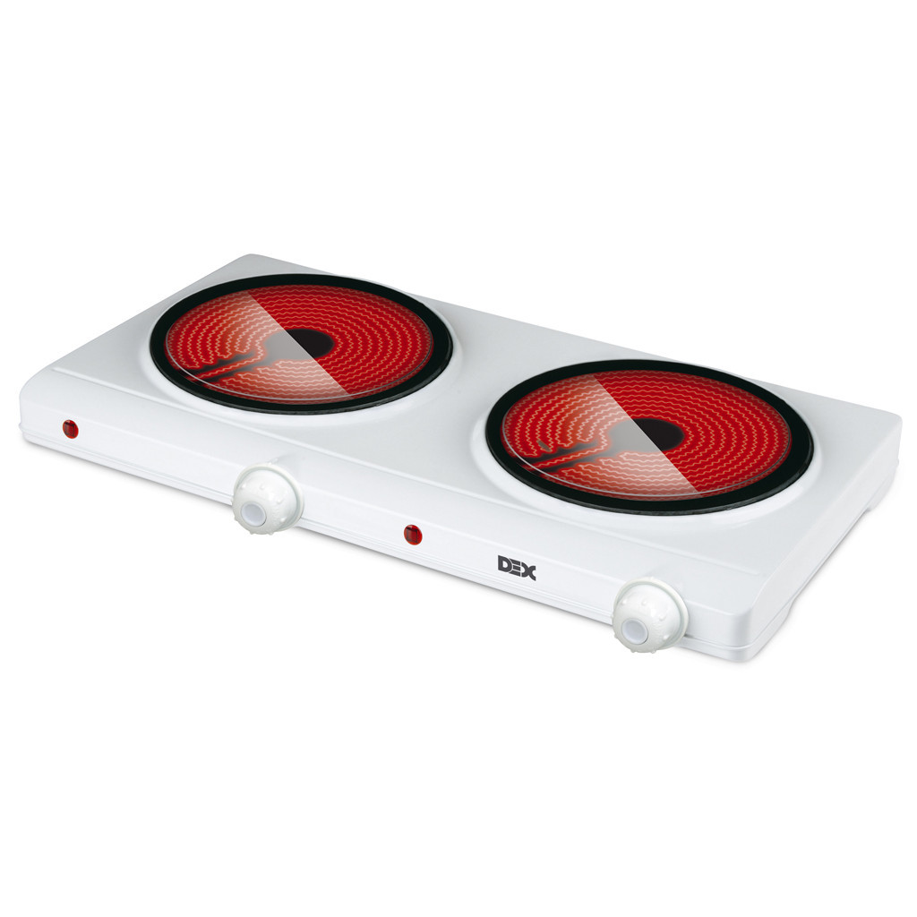 Плита DEX DCS-202 стане відмінним рішенням, якщо на Вашій кухні не вистачає місця для повноцінних великих плит або ж потрібна невелика, переносна модель для виїзду на дачу. Вона має дві конфорки, які оформлені витіюватими спіралями нагрівача. Склокерамічне покриття конфорок стійко переносить експлуатаційні навантаження, навіть випадкові побутові удари.