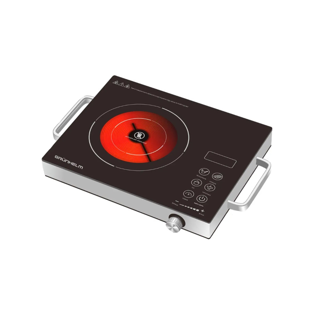 Сучасна настільна плита інфрачервона Grunhelm GIR-811 на 1 конфорку із сенсорним керуванням. Поверхня — пластина Black Crystal, модель має 8 температурних режимів, 8 рівнів потужності та 8 автоматичних програм. Для посоду діаметром 12-27 см