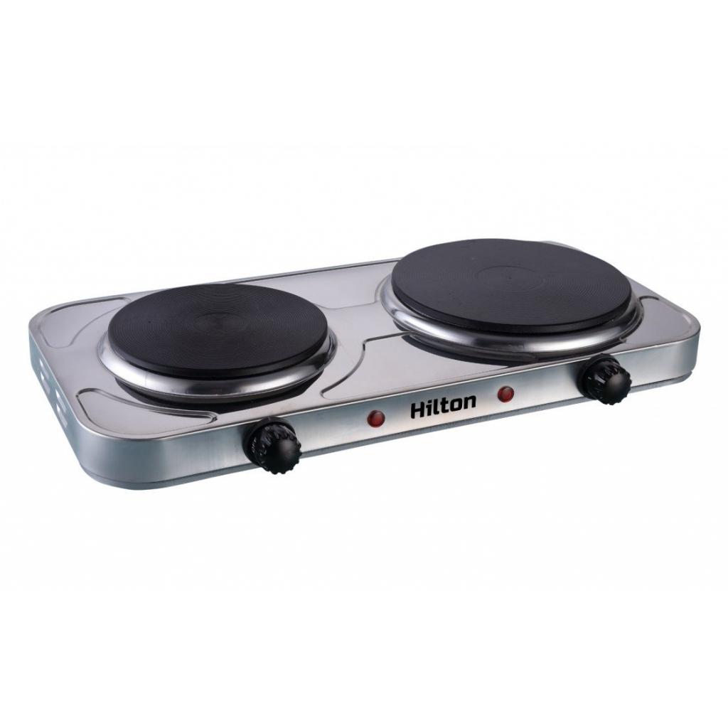 Плита електрична Hilton HEC-200, потужність 2000 Вт, число конфорок 2, діаметр конфорок 15.5 см, матеріал корпусу метал, автовідключення при перегріві, світловий індикатор роботи.