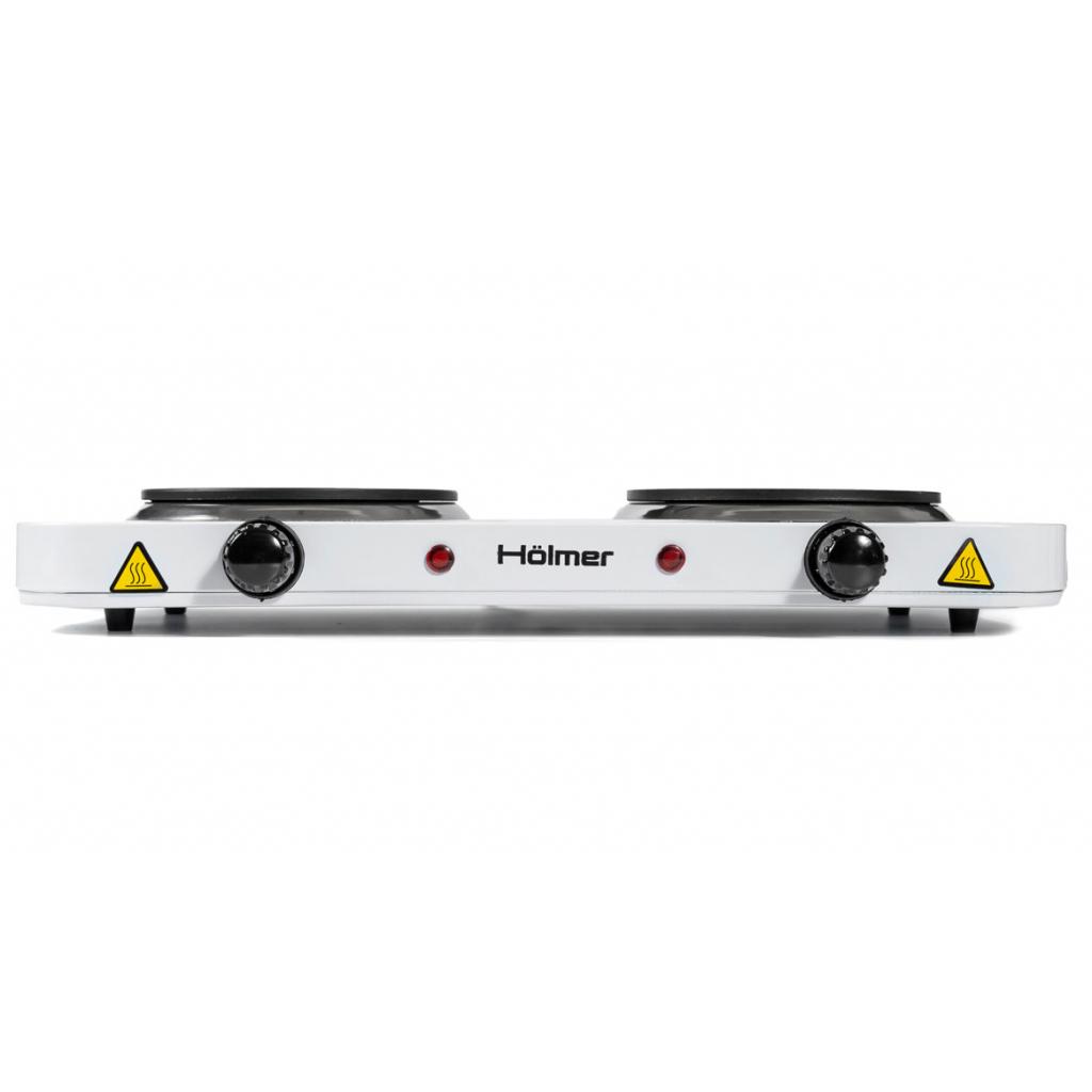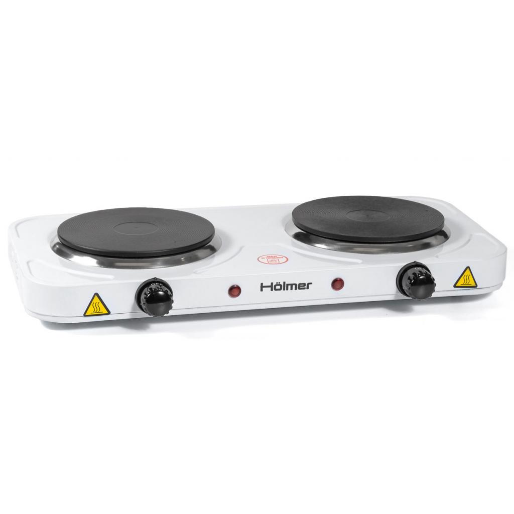 Настільна плита Holmer HHP-220W живиться від стандартної електричної мережі на 220 – 240В. Сумарна потужність конфорок становить 2000Вт (ліва потужністю 1кВт + права потужністю 1кВт).