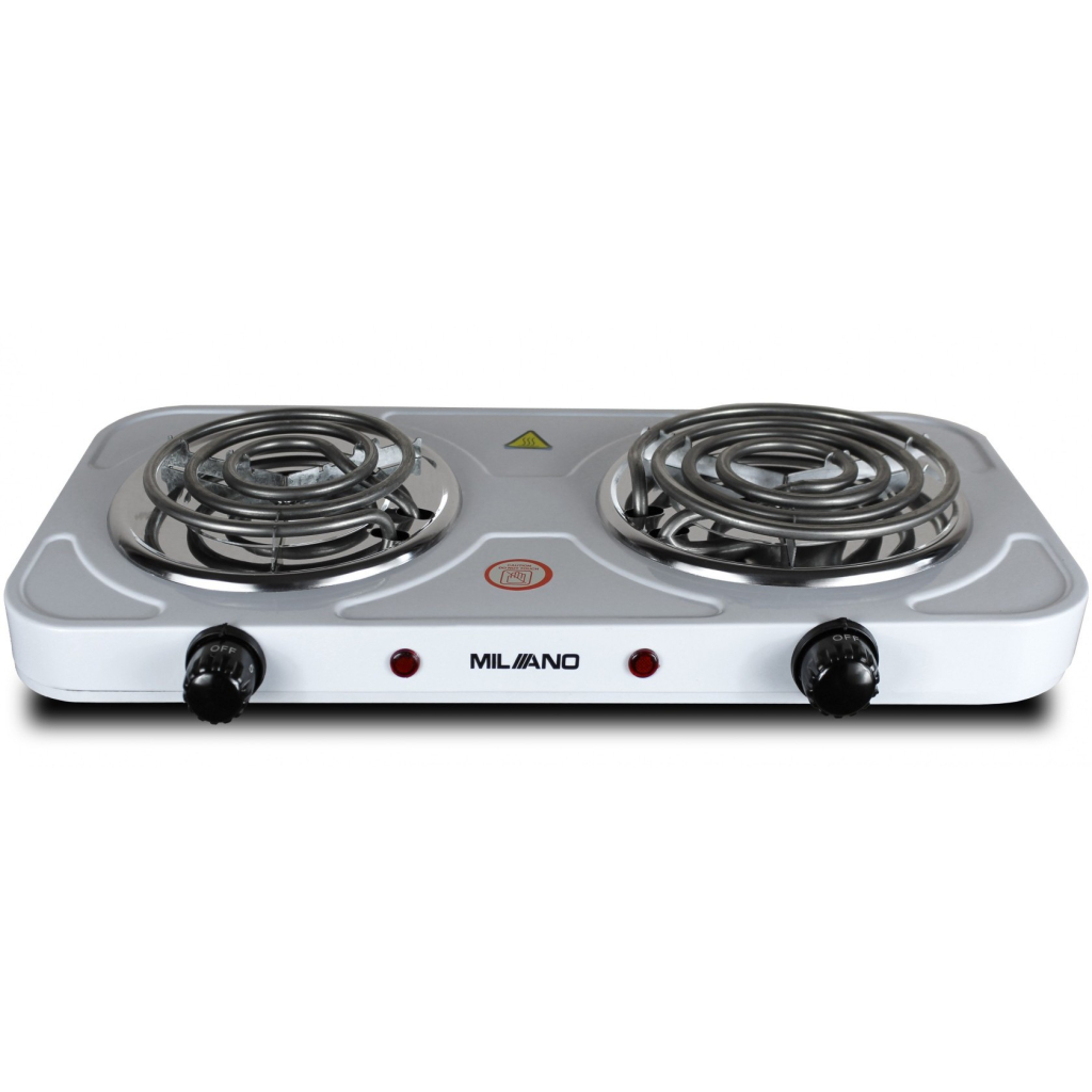 Електрична настільна плита MILANO HP-1020W з двома нагрівальними елементами та відмінною потужністю - 2000 принесе задоволення у швидкому приготуванні різноманітних страв та їх підігріву. Прилад красивого білого кольору, виконаний з міцного фарбованого металу, з двома нагрівальними елементами та регулюваннями на передній панелі, принесе задоволення всім господиням. Плита легко очищається та прослужить довгий час справно. Підходить для домашнього використання, а також на дачі, в гуртожитку, на орендованій квартирі і т.д.
