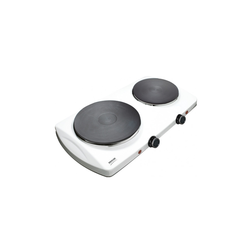 Плита Sencor SCP2253WH виконана в білому кольорі, універсальна для будь-якого забарвлення кухонної стільниці. Світле емальоване покриття просто в догляді, не схильне до корозії і подряпин, на ньому не видно розводи Розмір актуальний для невеликих кухонь, де цінний кожен см². Габарити плити 8,2х48х28, вага 4,9 кг. Достатня відстань між конфорками дає можливість використовувати обидва млинця одночасно.