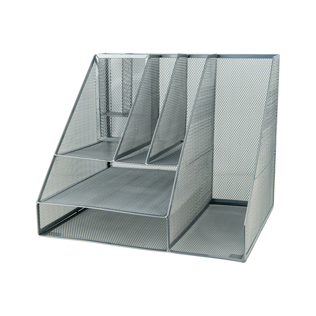 Підставка-органайзер має 7 відділень для різних дрібних предметів: паперів, блоку для нотаток, скріпок, кнопок, гумок, точилок, стікерів, канцелярського клею, ножиць, письмового приладдя тощо. Конструкція дуже стійка та міцна, адже підставка виготовлена з металу. А отже, вона – практична, зручна та витривала. Завдяки металевій сіточці, відділи прозорі, видно де що лежить. Ще одна з переваг органайзеру – можливість зібрати стильний настільний комплект з іншими металевими підставками Axent у цьому ж кольорі.