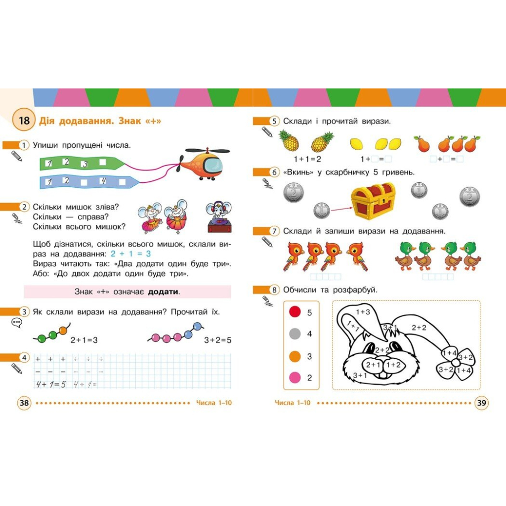 Навчальний посібник «Математика» для 1 класу ЗЗСО створено відповідно до Типової освітньої програми, розробленої під керівництвом О. Я Савченко. Це сучасне навчальне видання, яке органічно поєднує функції підручника і робочого зошита. Програмовий математичний матеріал посібника спрямовано на формування математичної й інших ключових компетентностей, на всебічний розвиток особистості дитини та її світоглядних орієнтацій засобами математичної діяльності.