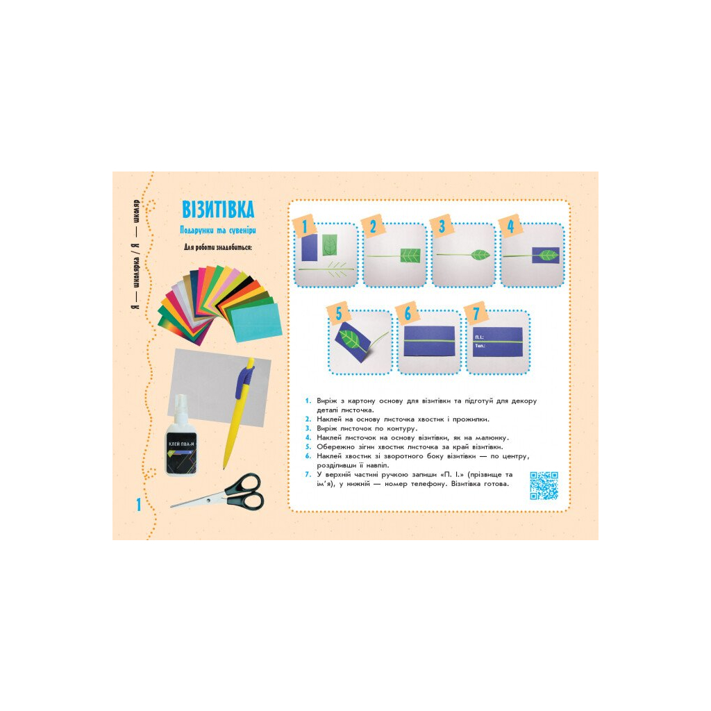 альбом містить творчі завдання, зразки готових виробів, схеми для виконання виробів, які мають виготовити учні.