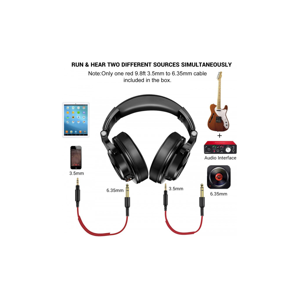 Ергономічний дизайн та можливість подвійного підключення роблять OneOdio A71M незамінним помічником як за діджейським пультом, так і під час тривалих сесій запису в студії, а кабель з вбудованим мікрофоном, який входить в комплект постачання, дозволяє використовувати гарнітуру для спілкування на ходу.