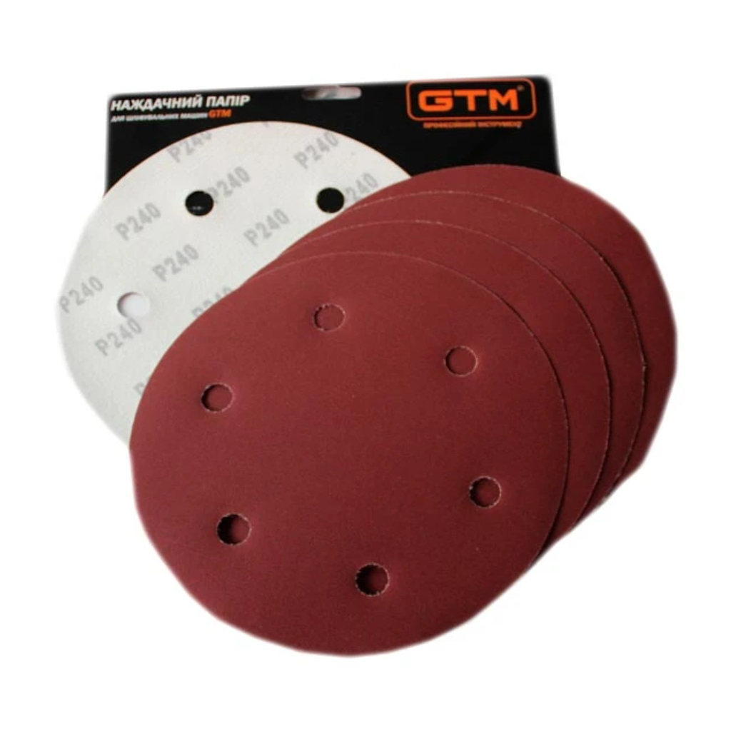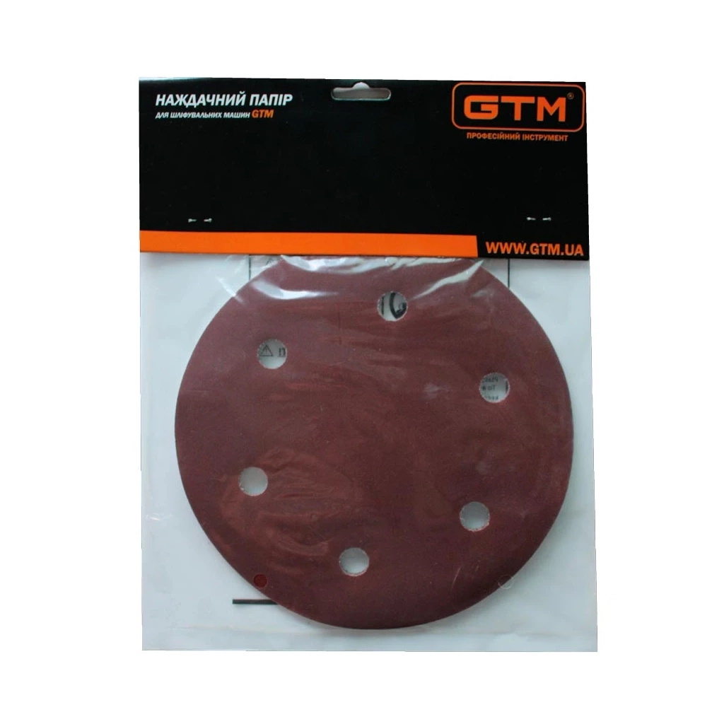 Наждачний папір GTM круг з отворами 215мм Р-60, липучка, 5шт. (SZB225V P60)