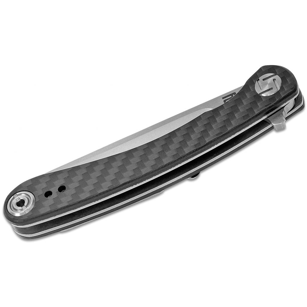 Накладки на рукоять виконані з вуглецевого волокна. Це легкий і міцний матеріал, крім того він робить зовнішній вигляд ножа привабливим.