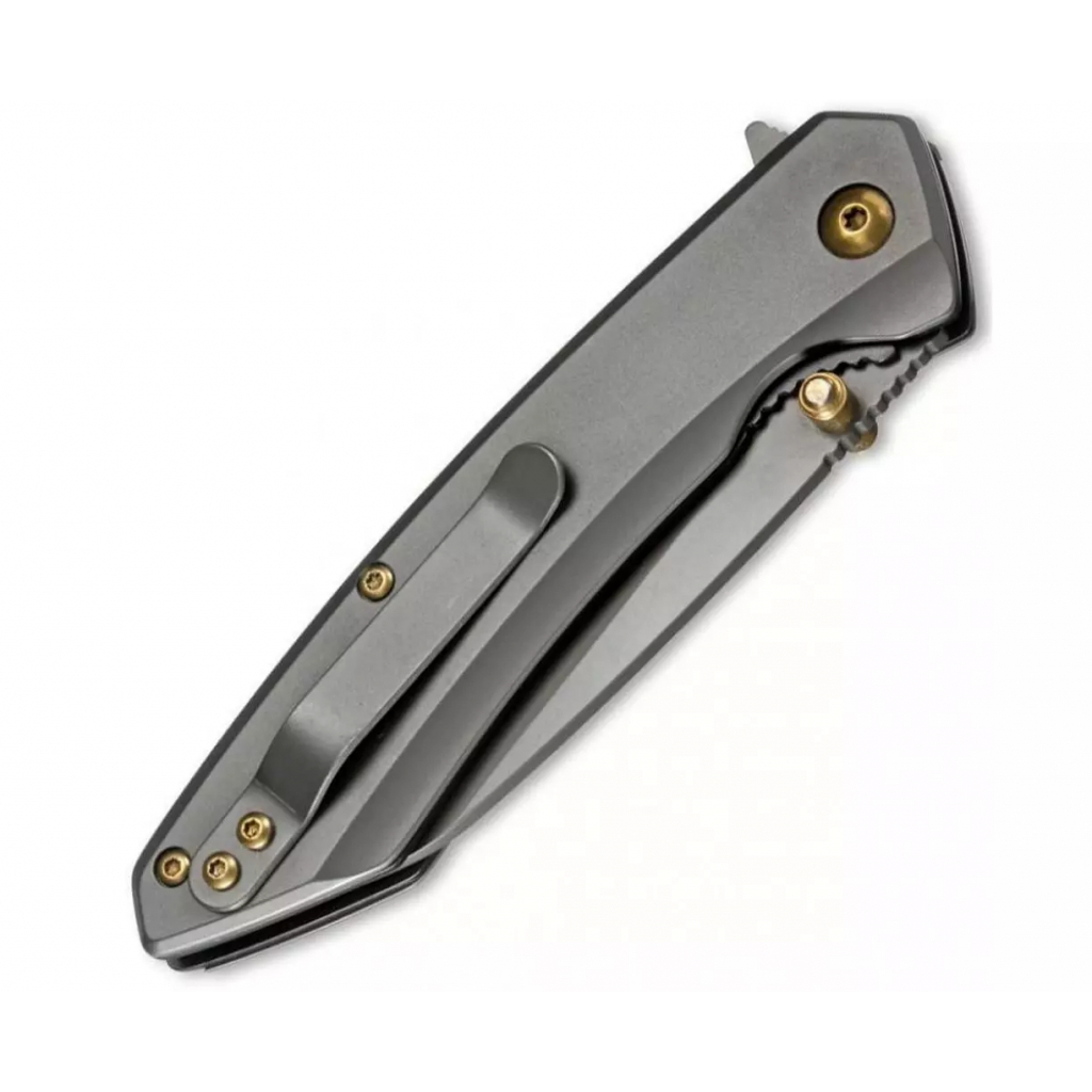Клинок виготовлений з високовуглеводної  китайської сталі 8Cr13MoV, яка володіє хорошими показниками корозійної стійкості і тривалий час зберігає заточку. За допомогою нігтьового зачепу клинок легко приводиться в робоче становище.