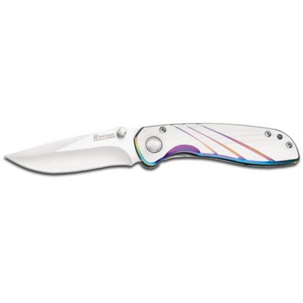 Повністю виконаний з нержавіючої, стали складаний ніж Boker Magnum Reflection I (01RY1070) strong> від німецького виробника Boker буде приковувати увагу оточуючих не тільки своєю зовнішністю, але і відмінними робочими характеристиками. Рукоять ножа покрита оксидом титану, що додає райдужний відтінків металу. Купити ніж Reflection I можна як подарунок будь-якому любителю ножів та інструментів.
