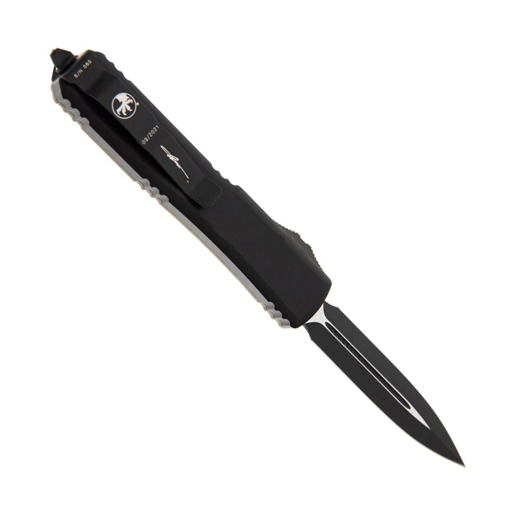 Компанія Microtech багато років славиться неперевершеним виготовленням своїх складних ножів передньої дії. Різноманітність моделей, їх висококласне складання та припасування всіх деталей, пильна увага до дрібниць і, звичайно ж, харизма утримують вироби компанії на лідируючих позиціях серед популярних ножів. Чіткість механізму викиду клинка, його безвідмовна робота та блискавична швидкість просто приголомшують. Mictotech Ultratech – лінійка викидних автоматичних ножів із удосконаленим механізмом фронтального викиду клинка (Auto Out-the-Front). Рукоятка стандартних моделей виготовлена ​​з алюмінієвого сплаву 6061-T6 з твердим анодуванням (тип III). На торці рукояті – склобій із міцною кулькою із загартованої сталі. Для зручнішого носіння передбачена кишенькова кліпса з невеликим отвором для кріплення темляка. Марка сталі клинків може відрізнятися залежно від постачання. Варіанти сталей для мечів ножів, випущених у 2020 році: Carpenter CTS 204 P, Carpenter XHP, Bohler M390, Bohler ELMAX®. Дана модель відноситься до ножів колекційної серії Signature Series і випускається обмеженим тиражем. Незвичайна особливість ножа - використання зносостійкого склотекстоліту G-10 як матеріал передньої частини рукояті. Двогострий клинок і фурнітура мають чорне покриття. На кліпсі розташований логотип, автограф Марфіоне та серійний номер ножа.