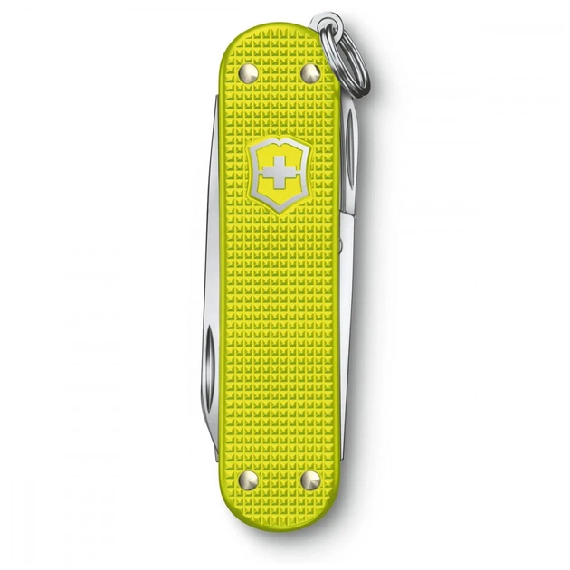 Victorinox CLASSIC SD Alox Limited Edition 2023 - лімітований складаний ніж-брелок 58 мм на 5 функцій. Дизайн 2023 Electric Yellow в енергійному яскраво-жовтому кольорі, який додасть у ваш день заряд бадьорості та оптимізму.