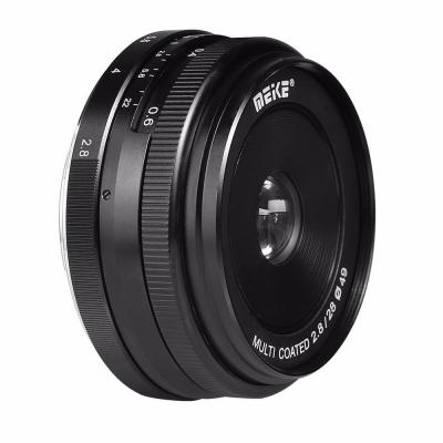 Об'єктив Meike 28mm f/2.8 MC FX-mount для Fujifilm (MKEF2828) являє собою світлосильний мануальний об'єктив для камер Fujifilm з кріпленням FX-mount. Забезпечує м'яке боке завдяки високій світлосилі 2.0. Має невелику вагу і правний хід кілець діафрагми і фокусування.